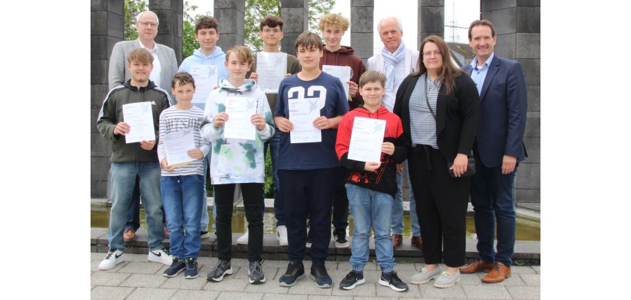 Noch ein 3. Platz, diesmal im Bereich Technik, ging ebenfalls an die Realschule plus an der Römervilla. Die Zehntklässler Erik Daub, Robin Becker und Jonas Urner setzten sich mit Nachhaltigkeit und Mobilität auseinander und entwickelten eine geeignete Infrastruktur für Ladevorgänge. Das „Geheimnis der Energieübertragung“ ermöglicht es beispielsweise Bussen, an Haltestationen unauffällig mit elektrischer Energie versorgt zu werden. Dabei wird mit Hilfe des Induktionsprinzips Energie in einen Speicher in Form eines mobilen Akkus übertragen - ohne Kabel und weitere Verluste. „Es ist toll zu sehen, wie engagiert sich die Schüler in die Jugend-forscht-AG einbringen und welche spannenden Ideen sie entwickeln“, betonte Fachlehrer Hans-Jürgen Stenzel. Auch Thomas Przybylla, Bürgermeister der Verbandsgemeinde Weißenthurm, die Trägerin der Realschule plus an der Römervilla ist, freut sich über den Erfolg. Gemeinsam mit Schulleiter Gerhard Müller gratulierte er den Nachwuchsforschern bei einer kleinen Feierstunde im Ratssaal der VG: „Wir sind stolz auf die hervorragenden Platzierungen“, erklärte Przybylla, der sich intensiv mit den jungen Tüftlern über deren Projekte austauschte und jedem einen Gutschein für eine Buchhandlung überreichte. „Eure Ideen sind unsere Zukunft“, sagte der Verwaltungschef. Müller dankte Stenzel, der die Jugend-forscht-AG in diesem Jahr zum letzten Mal betreute und in Kürze in den Ruhestand geht. Seine Nachfolgerin Sandra Krechel ist bereits in den diesjährigen Wettbewerb involviert und war auch mit in den Ratssaal gekommen. „Jetzt hoffen wir, dass die jungen Talente auch auf Landesebene überzeugen können“, sagte Müller.